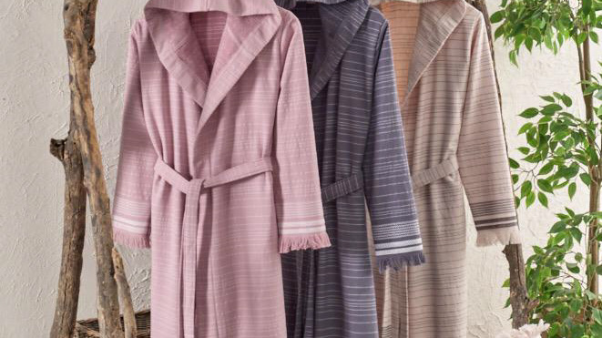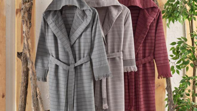 Very soft bathrobes produced from pure cotton. Modern, durable for long-term usage and confortable. Have elegant, modern patterns and colors.