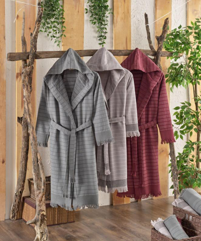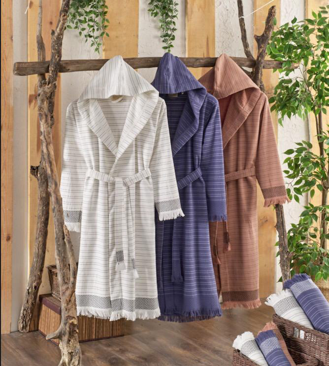 Terry unisex bathrobes produced from soft cotton with fine touches. Easy to dry so versatile, durable and confortable. Have elegant patterns and colors.