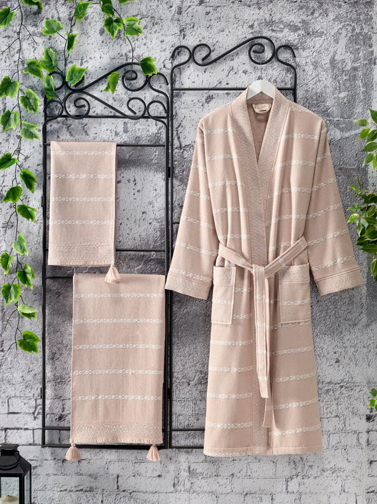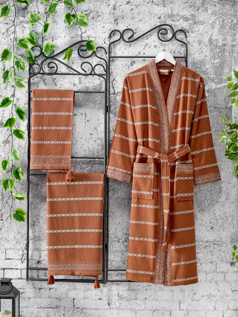 Terry unisex bathrobes produced from soft cotton with fine touches. Easy to dry so versatile, durable and confortable. Have elegant patterns and colors.