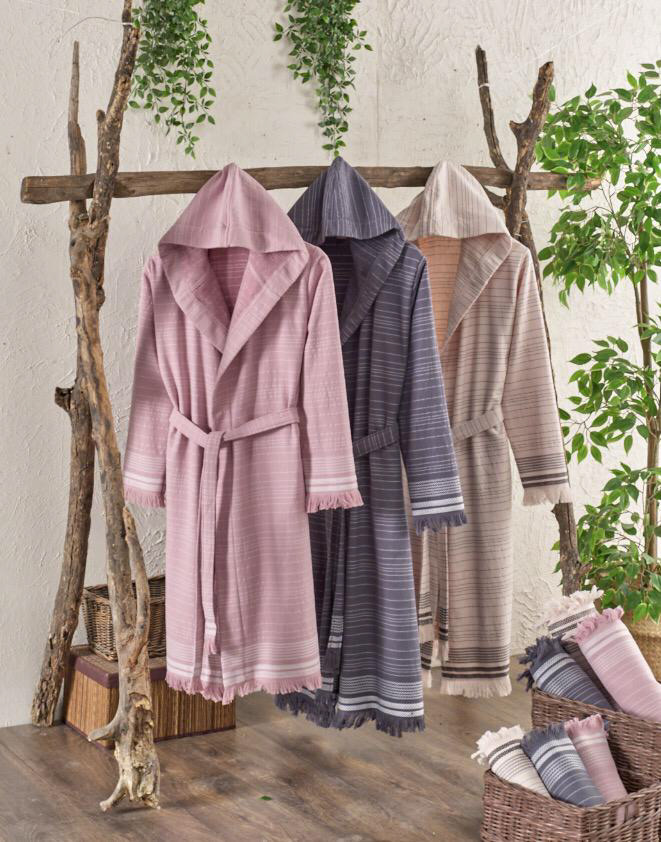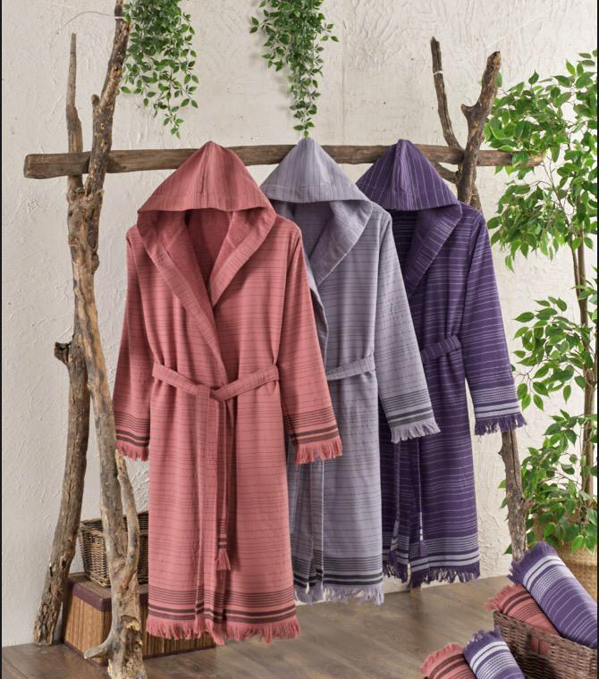 Terry unisex bathrobes produced from soft cotton with fine touches. Easy to dry so versatile, durable and confortable. Have elegant patterns and colors.