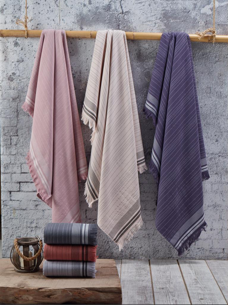 Terry towels produced from soft cotton with fine touches. Easy to dry so versatile, durable and confortable. Have elegant, modern patterns and colors. Ideal for everyday use.