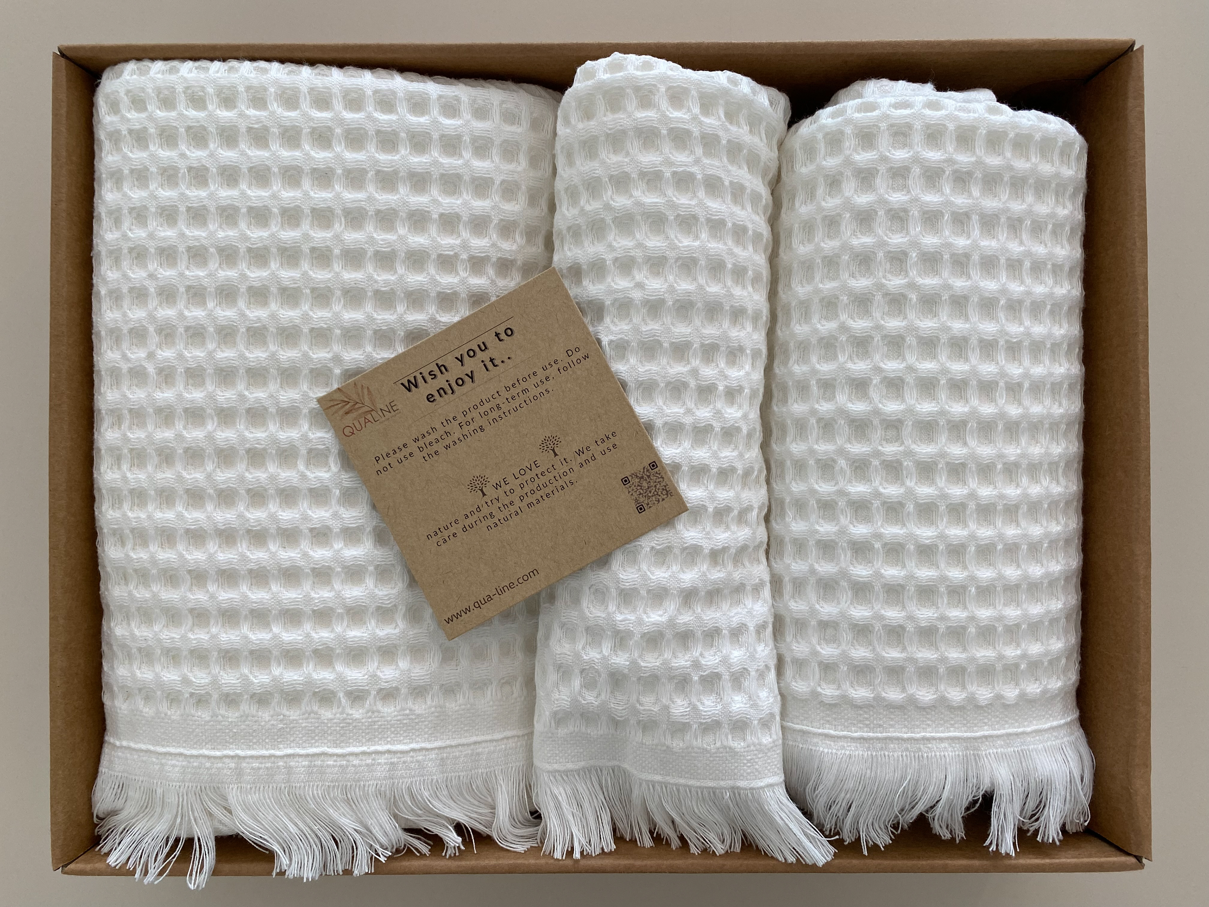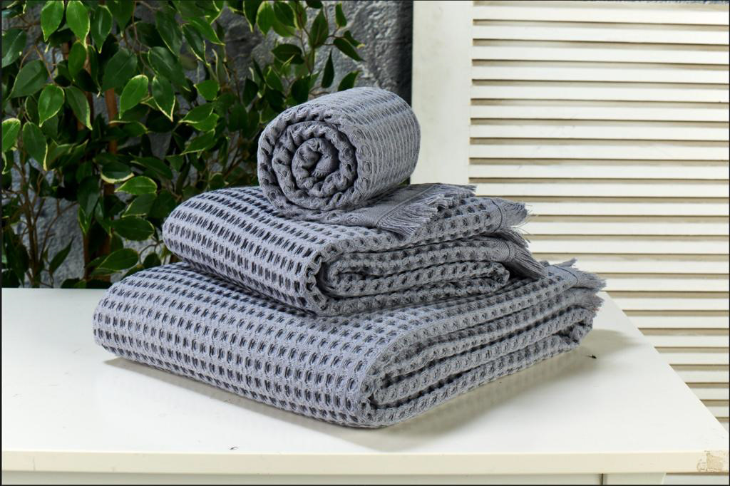 3-pcs towel set produced from soft cotton with fine touches. Has special and stylish design. Easy to dry so versatile, durable and confortable. Have an elegant, modern pattern and soft colors. Ideal for everyday use.
